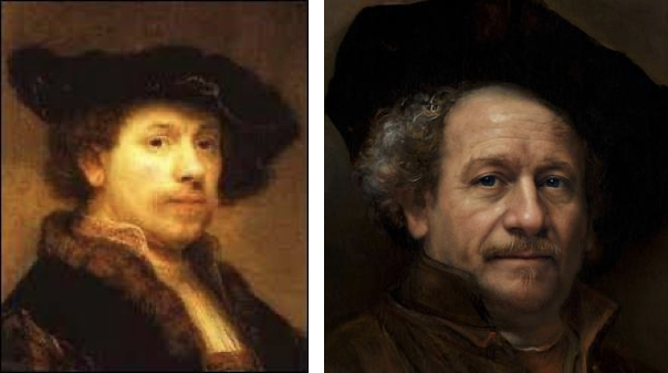 Rechts in beeld: een fotorealistische reconstructie van Rembrandt van Rijn. Credits: Bas Uterwijk.