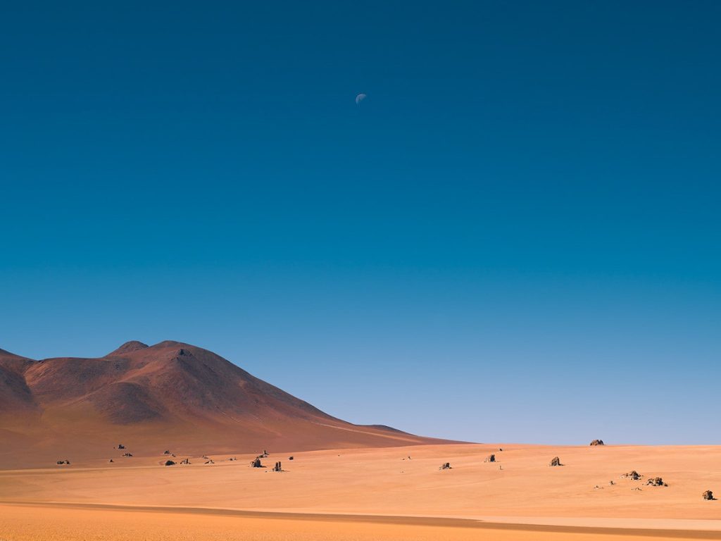 In het zuidwesten van Bolivia, op een hoogte van 3.650 meter, heb je de Salar de Uyuni (letterlijk het zout van ‘Uyuni’, de dichtstbijzijnde stad). Met een oppervlakte van 10.582 km2 is het de grootste zoutvlakte van de wereld. Een bijna karakterloos wit landschap dat is achtergelaten door de verdamping van de prehistorische meren.