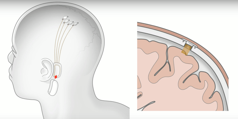 De draden van de interface staan in verbinding met een chip die achter het oor geplaatst wordt en die de signalen moet versterken en doorsturen naar een computer of smartphone.