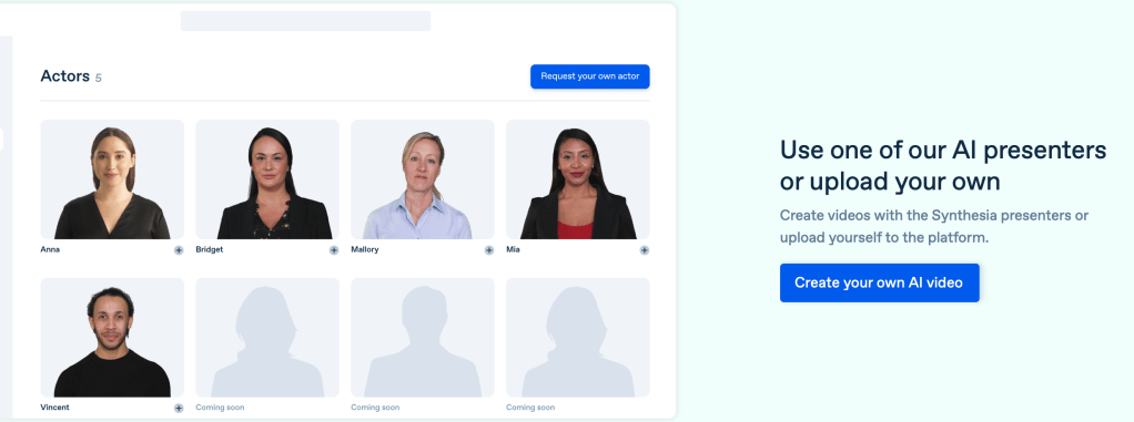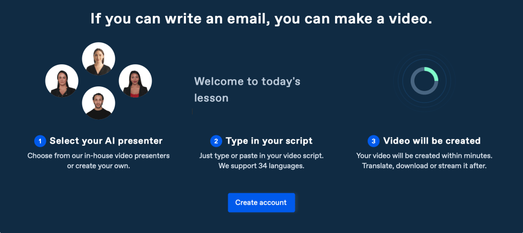 Het maken van een video met de tools van Synthesia kan seconden duren. Het is zo simpel als het selecteren van een avatar. Je voegt het script in en klikt op de knop “Genereer video”.