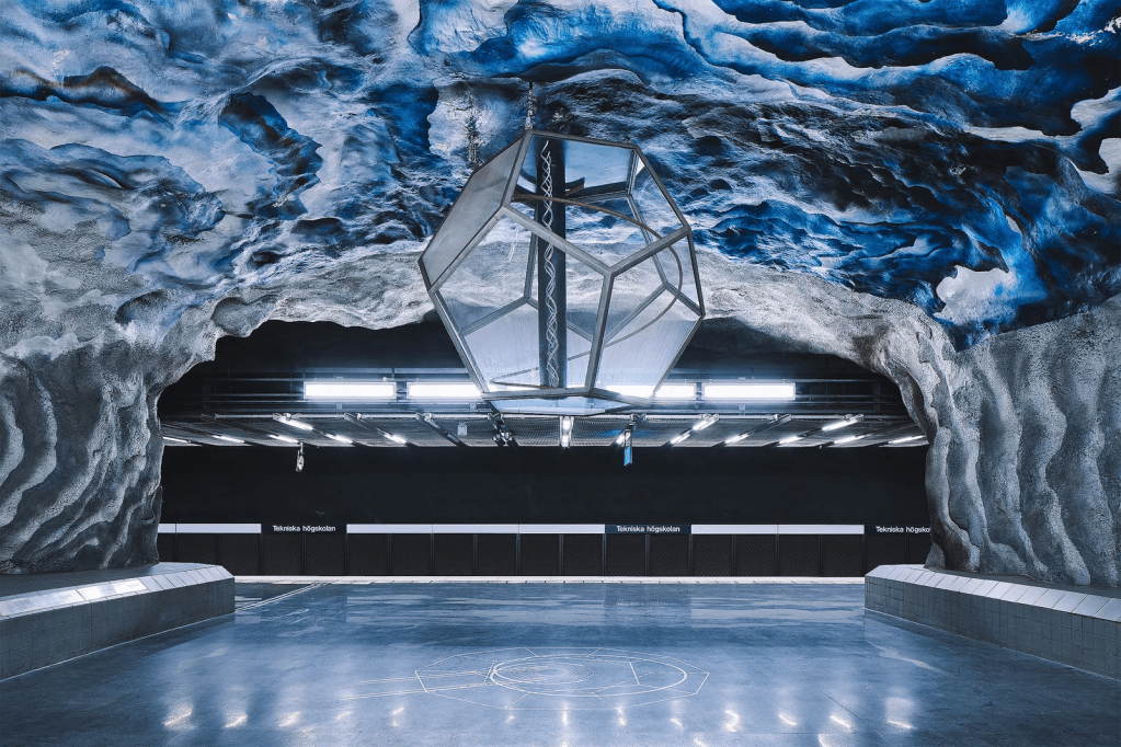 Reizen met de metro is in de meeste grootsteden niet altijd een pretje. Het kan er vuil en onveilig overkomen; niet zo dus in Stockholm. Altrath zei dat – toen hij bij het fel verlichte T-Centralen Station aankwam – hij het gevoel had dat hij een magische wereld was binnengetreden. Met blauw-witte muurschilderingen op de enorme muren en plafonds, is het inderdaad indrukwekkend.