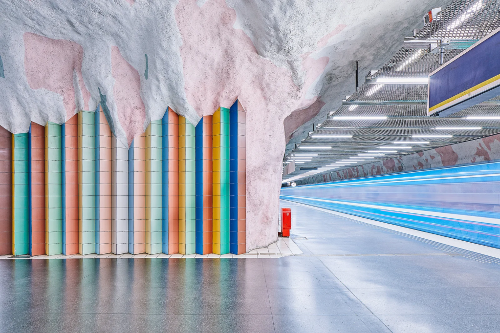 Gelukkig hoef je om van kunst te genieten niet altijd naar een museum. Zo ziet fotograaf David Altrath het ook. Hij trok vorig jaar (2019) doorheen de verrassend kunstzinnige metro van Stockholm, de hoofdstad en de grootste stad van Zweden. Kunst druipt er zowat van de muren.
